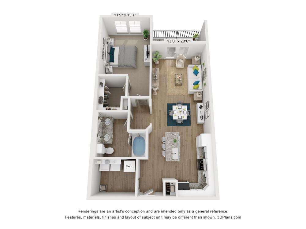 Unit Type1 Bed / 1 BathFloor Area853 sq. ft.AvailableTodayStarting at$1,239 / mo